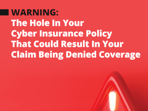If you have ANY concerns over this – including whether or not you need coverage, whether your coverage is sufficient and whether you are doing what you need to do to avoid an insurance denial, visit our website to schedule a quick consultation to discuss your current situation and to receive a referral to a cyber insurance expert we recommend.